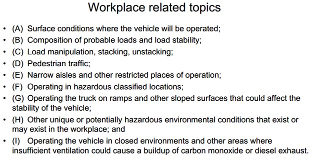 Here is a list from OSHA’s presentation of expected areas of focus during a NEP inspection: